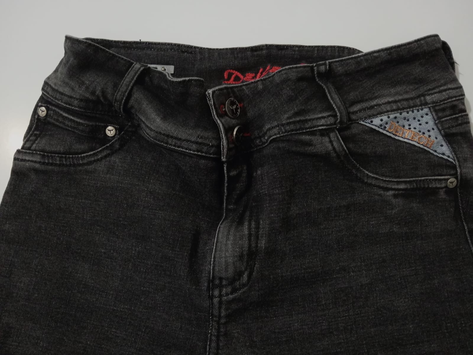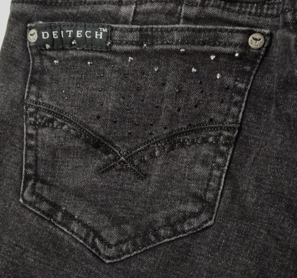 Este jean tipo Skinny Stretch en gris oscuro añade un aire moderno y atrevido a tu look diario. Su diseño estilizado y detalles decorativos lo hacen ideal para destacar con confianza y comodidad, con piedras de cristal en los bolsillos traseros y detalle en vista.